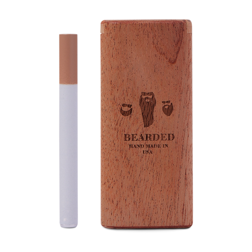 The Bearded Slide-Top Dugout is the ultimate accessory for on-the-go smoking. Crafted in Spearfish, South Dakota, this high-quality wooden dugout features a convenient twist-top design, allowing for quick access to your herbs. Each dugout includes a glass one-hitter, making it the perfect portable option for your smoking needs. Available in several beautiful wood types, including Cedar, Cherry, Pine, African Mahogany, Sycamore, and Padauk, the dugout is spring-loaded for ease of use.